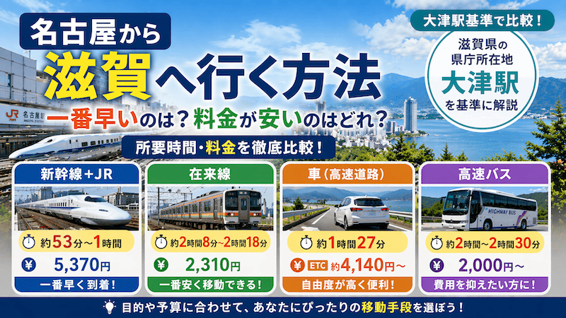 まずは、大阪から津駅までの主な移動手段を比較します。